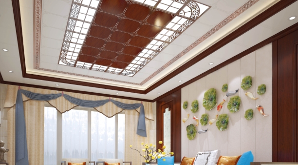 這個客廳是中國傳統(tǒng)風(fēng)格和現(xiàn)代風(fēng)的融合,保留了中式風(fēng)格的精髓,與現(xiàn)代潮流的碰撞創(chuàng)新,加入集成吊頂,演繹另一番美妙。