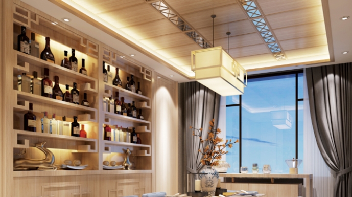 現(xiàn)代感十足的吊頂設(shè)計、扣板上簡潔的圖案,更是給人以視覺上的完美享受。這種極簡風(fēng)格的餐廳設(shè)計更適合快節(jié)奏的生活。